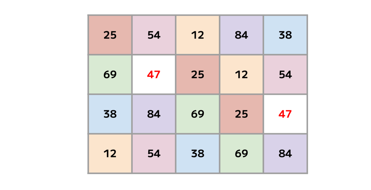 上記表でそれぞれの数字を色分けしていますが、47だけ赤文字にしています。