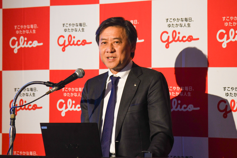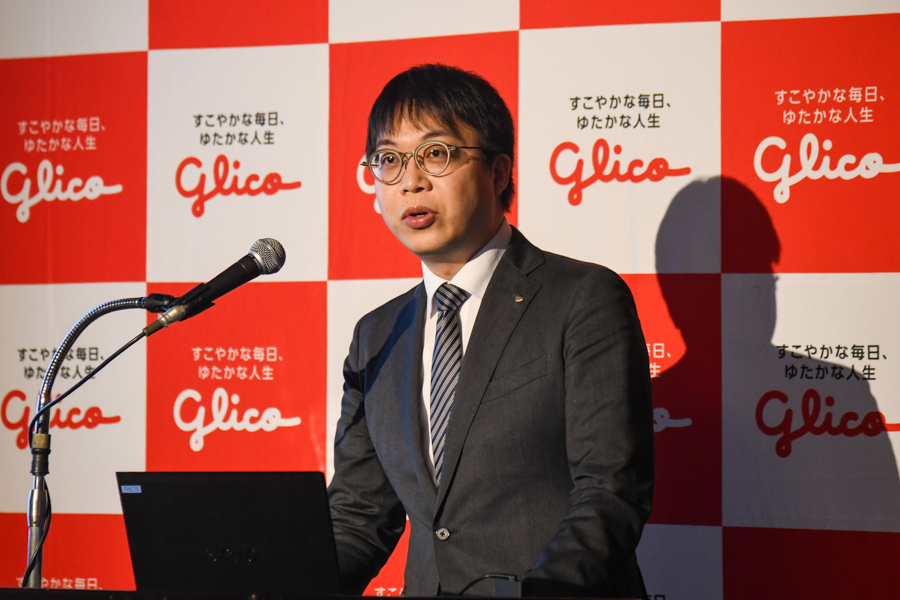 一部商品が1月27日からグリコダイレクトショップで先行発売されることから、全国発売に先立ってこのタイミングで開催された発表会では、まず始めに同社乳業事業部長の大高寛氏(※高はハシゴダカ)が登壇。「すこやかな毎日、ゆたかな人生」という同社のパーパスや創業からの歴史、おいしく毎日続けられる健康対策の習慣化に取り組んできた同事業部の取り組みなどについて触れた同氏は、今回の新商品について「ビフィズス菌の研究から11年、抗肥満構想から5年を費やした、まさに乳業事業のありたい姿を体現した商品です」と述べ、ついに発売を迎えられる喜びを語った。