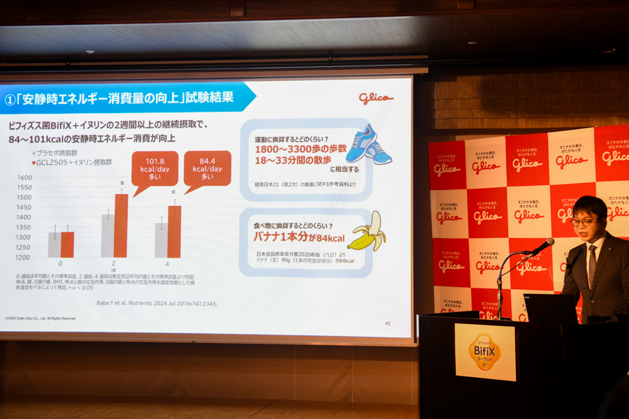 これらを踏まえて「自分が動いていない時にも腸内細菌が働くことでエネルギー消費が向上する。腸から全身の健康への影響を考えると、グリコの新しいステージに根差した研究成果になっていると思います」と述べた同氏。