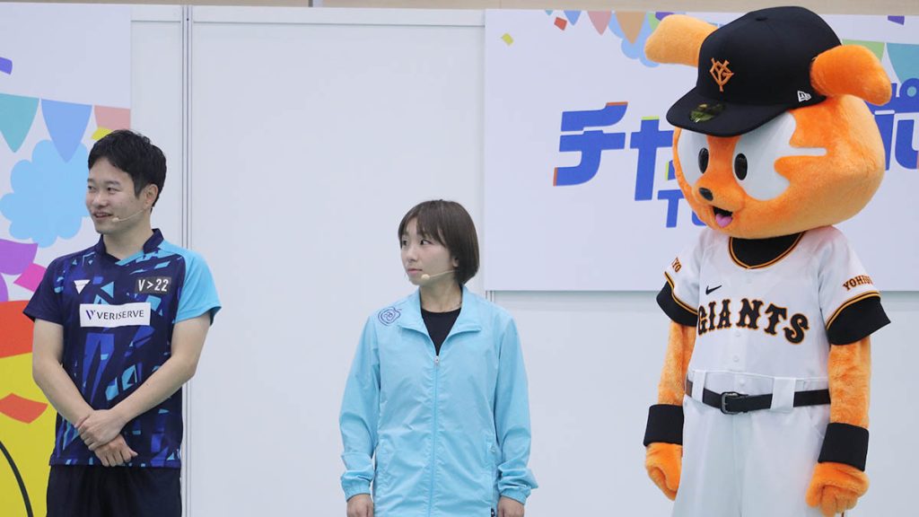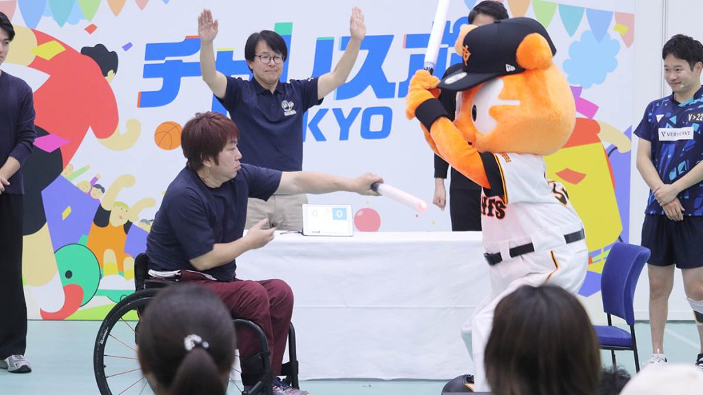 対するは、パラ卓球の岩渕幸洋さん、フィギュアスケート元日本代表の高橋成美さん、そして読売ジャイアンツのマスコット・ジャビットによる「岩渕さんチーム」だ。
