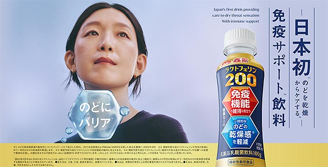 乾燥が気になる季節にフィットする「免疫機能の維持」と「のどの乾燥感軽減」のWヘルスクレームで注目を集める森永乳業「森永ラクトフェリン200ドリンクタイプ」。