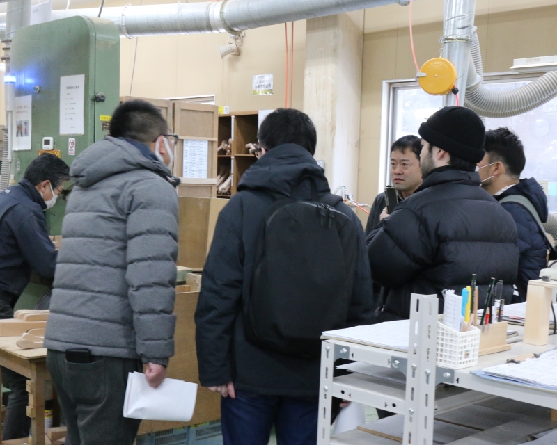 当日、参加者がまず足を踏み入れるのは、普段は公開されていない木製ハンガーの製造工場です。