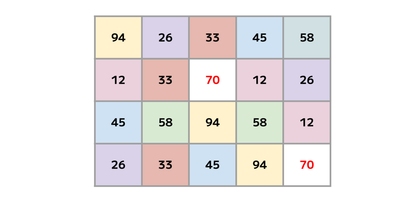 上記表でそれぞれの数字を色分けしていますが、70だけ赤文字にしています。