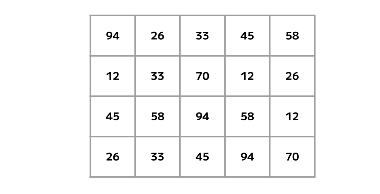 20マスの表の中に、2つしか書かれていない数字は見つけられましたか?