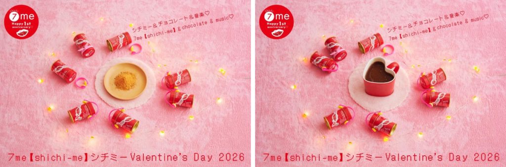 イメージビジュアルでは、リビングでシチミーやシチミー入りホットココアを囲み、ピンク色のカーペットの上でヘッドフォンをつけて音楽を聴きながらくつろぐ様子が描かれている。特別な演出ではなく、リラックスした日常の延長線上にあるバレンタイン像が印象的である。