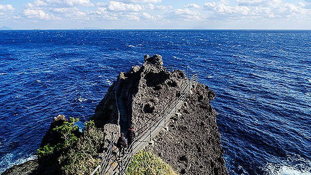 南端の石廊崎(画像)は、海底火山から噴出した溶岩等による荒々しい地形が際立ち、火山が生み出した伊豆半島の特徴を象徴している。
