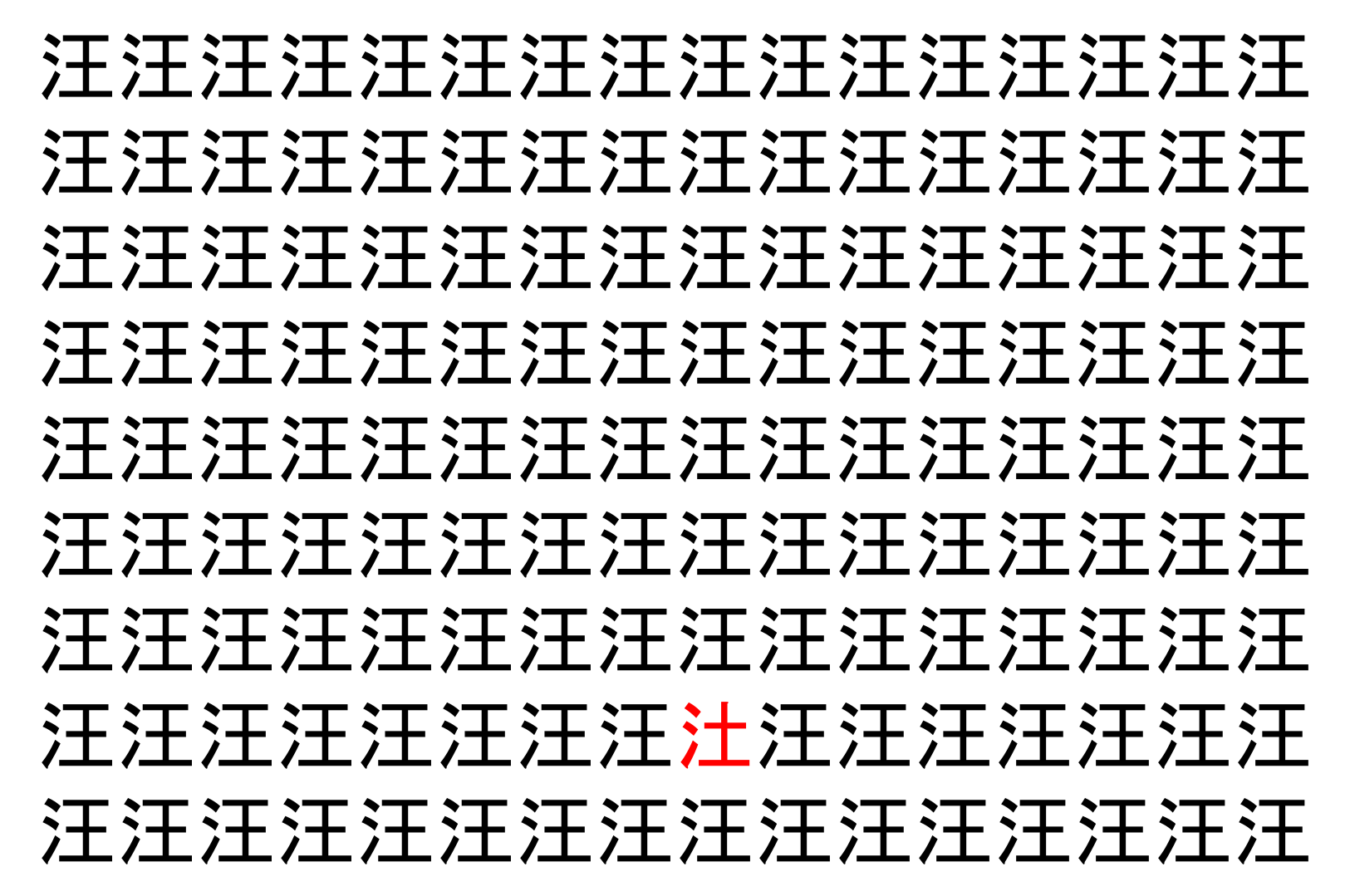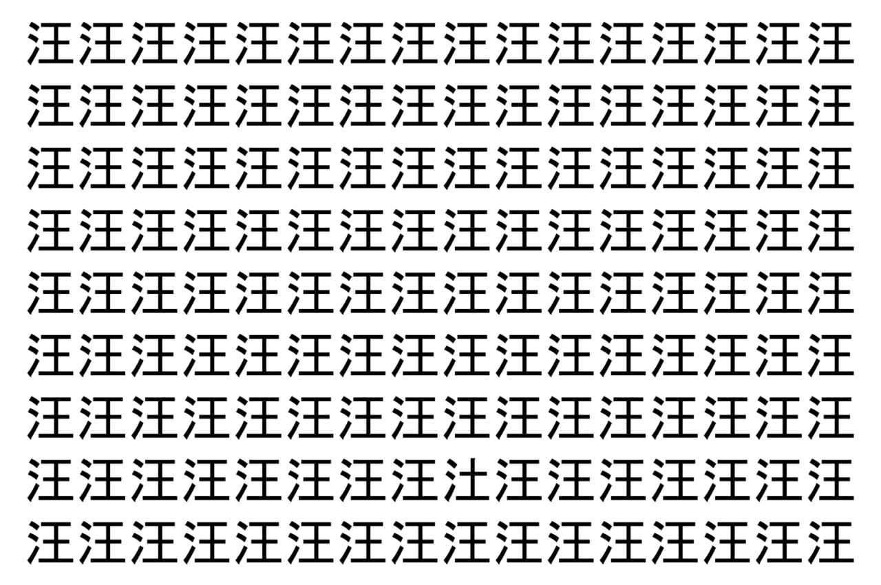 【脳トレ】「汪」の中に紛れて1つ違う文字がある!?あなたは何秒で探し出せるかな??【違う文字を探せ!】