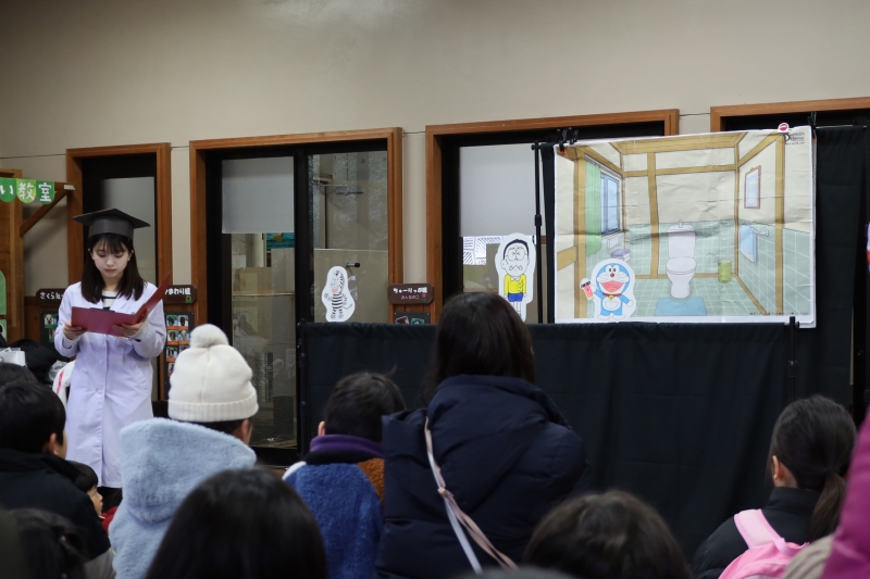 動物園と歯科大学。一見すると少し意外な組み合わせですが、会場ではその距離感を感じさせない工夫が随所に見られました。人形劇やクイズを交えながら、「歯」や「食べること」の大切さを伝える内容は、子どもでも自然と参加できる構成になっています。