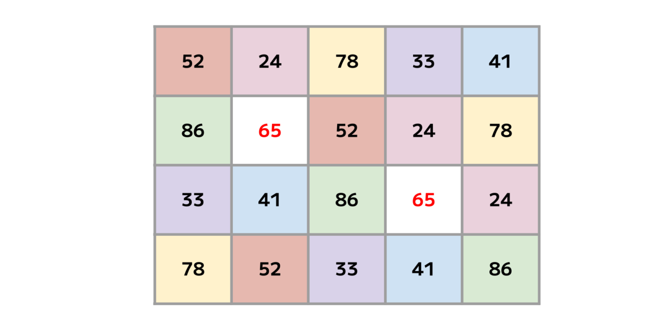 これを見ると、表中に65が2つしかないことがしっかり確認できますね!!