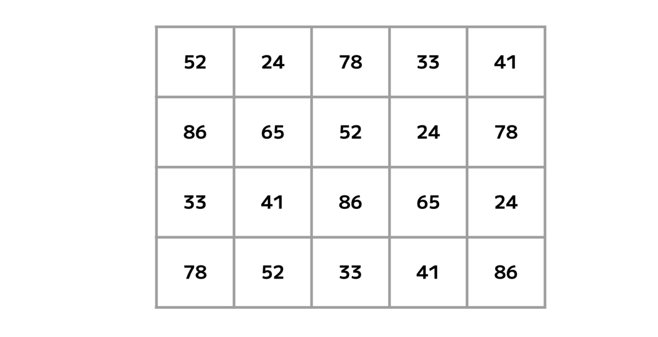 20マスの表の中に、2つしか書かれていない数字は見つけられましたか?