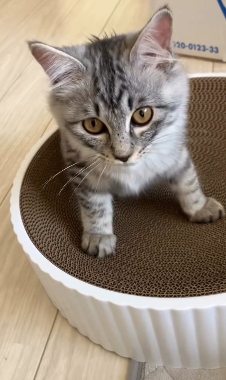 Instagramアカウント「風花家」に登場したのは、ペットボトルの上を器用に歩くサバトラ猫の「ザク」ちゃんの様子。飼い主さんの下でハリネズミさんたちと暮らす、保護猫の女の子です。