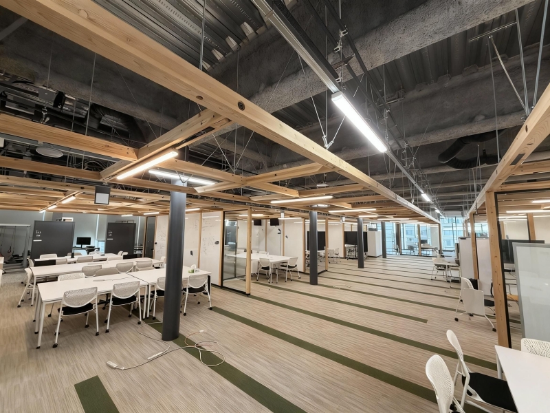 研究体験連動型学習や、AIクリエーション、AIアルゴリズムデザイン、ソーシャルイノベーションの3コースは、学内に新設されるサイバークラスルームを拠点にオンラインでも実施。オンラインやオンデマンド配信により、場所や生活スタイルにとらわれない学修環境が整えられます。