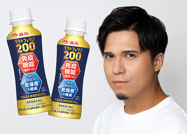 WEBムービーでは、『森永ラクトフェリン200ドリンクタイプ』になりきってしゃべっています(笑)。