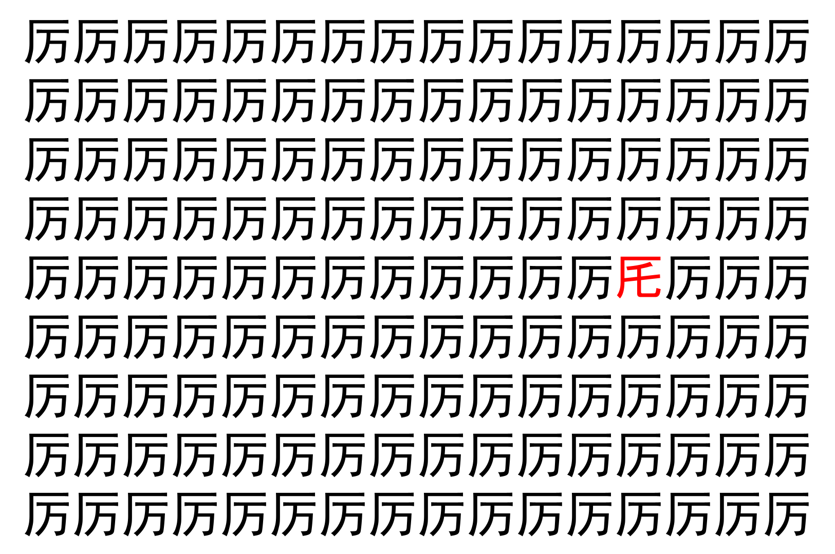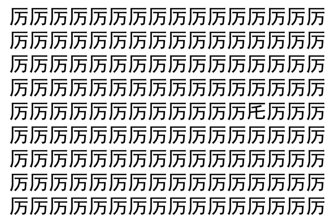 【脳トレ】「厉」の中に紛れて1つ違う文字がある!?あなたは何秒で探し出せるかな??【違う文字を探せ!】