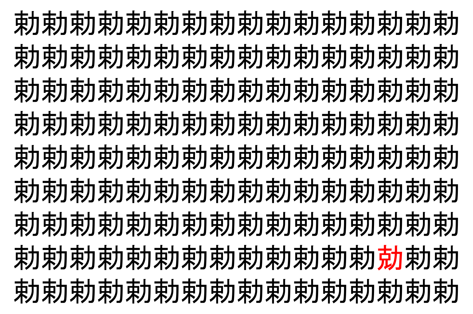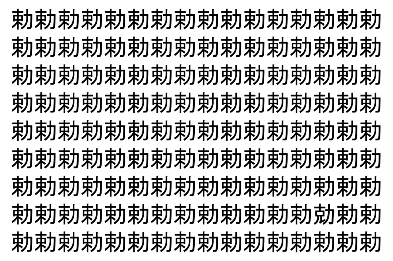【脳トレ】「勅」の中に紛れて1つ違う文字がある!?あなたは何秒で探し出せるかな??【違う文字を探せ!】