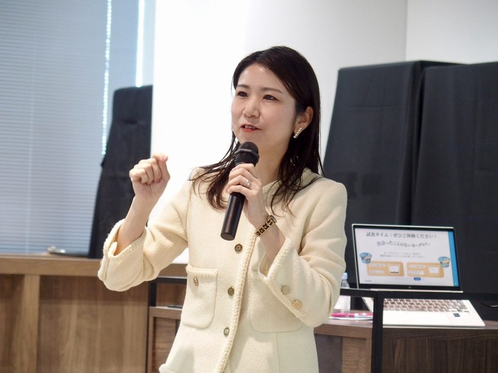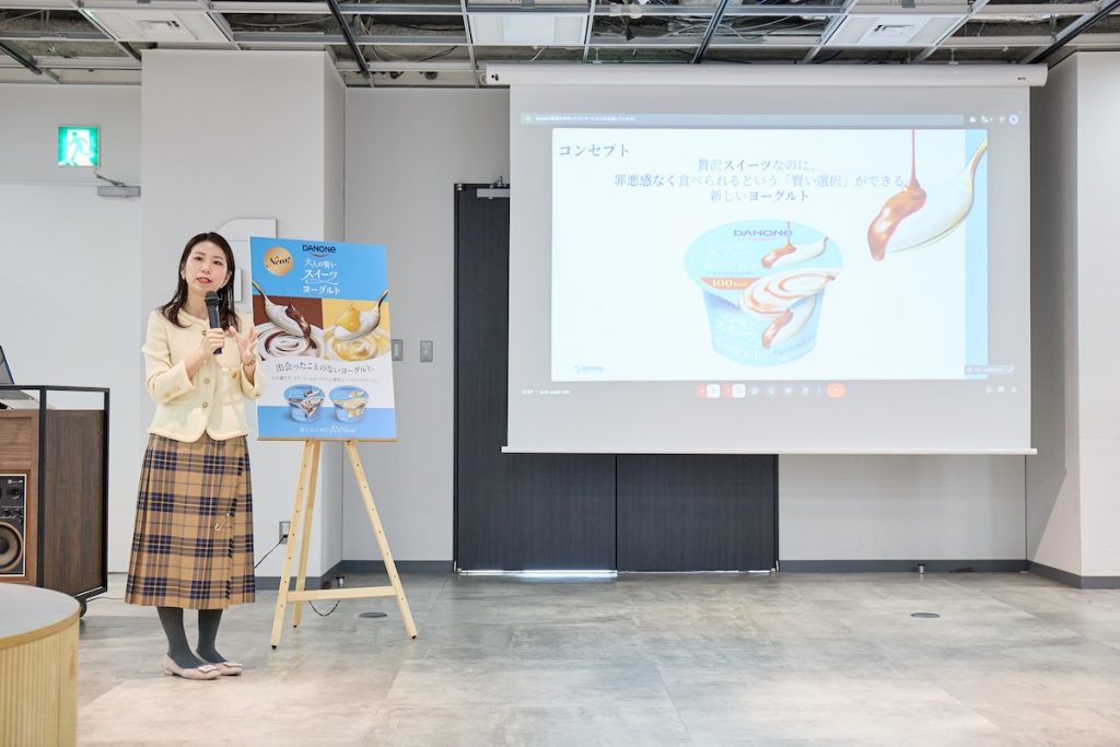 前半は、ダノンジャパン株式会社 マーケティング部 シニアブランドマネージャーの高木綾香さんが登壇。ブランド誕生の背景や商品の説明を行いながら、試食会が行われた。