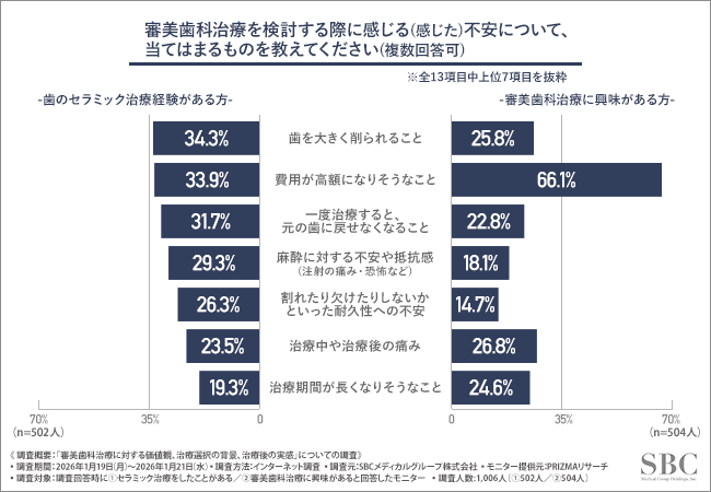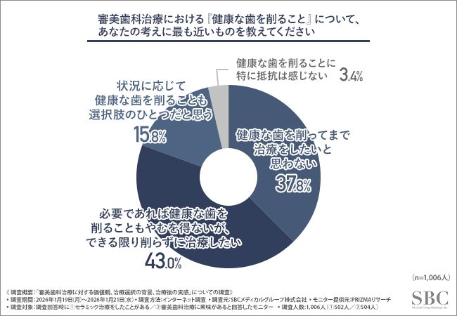 鏡を見るたびに、自分の笑顔を無意識にチェックする人は少なくない。歯並びや歯の白さは、第一印象を左右する要素のひとつであり、SNSの普及やオンライン会議の増加によって、その意識は以前よりも確実に高まっている。しかしその一方で、「美しさ」と引き換えに歯を削ることへの抵抗感や、将来的な健康リスクへの不安を抱く声も増えている。単に整っていればよいという時代から、自分の歯を守りながら美しさを追求したいという志向へと、価値観は確実に変化しつつあるのである。そうした背景のもと、SBCメディカルグループホールディングス(https://sbc-holdings.com/jp)の連結子会社であり、医療機関への経営支援事業を展開するSBCメディカルグループは、審美歯科治療に対する価値観、治療選択の背景、治療後の実感について調査を実施した。