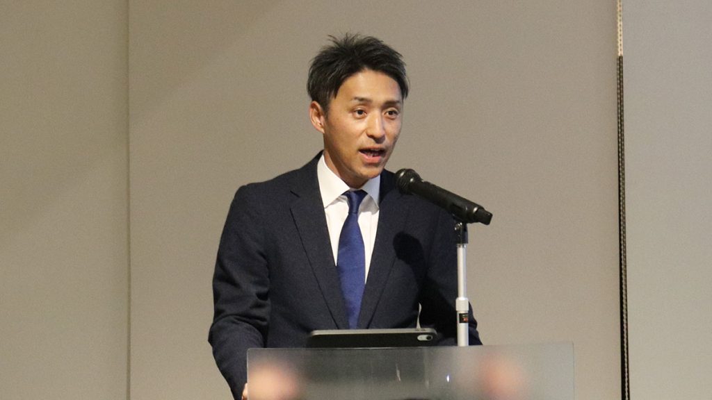 発表会の冒頭、河淳株式会社 ケユカ事業部 事業部長の渡邉陽平氏が登壇。ブランドの歩みと、今回のテーマである「二季化」への向き合い方について語った。