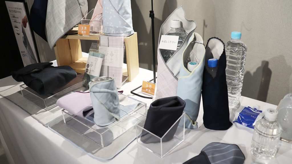 特に注目を集めたのは体験コーナーだ。「すごナノ撥水」シリーズのウェアに実際に水をかけ、その弾き具合を試すデモンストレーションや、「巻くだけ保冷クロス」でペットボトルを持ち上げる実験には、その機能性の高さに驚きの声が上がっていた。また、キッチン・冷蔵庫収納コーナーでは、監修を務めた整理収納アドバイザーの中山真由美氏が実演解説を行い、理論に基づいた収納術に熱心に耳を傾ける参加者の姿が見られた。