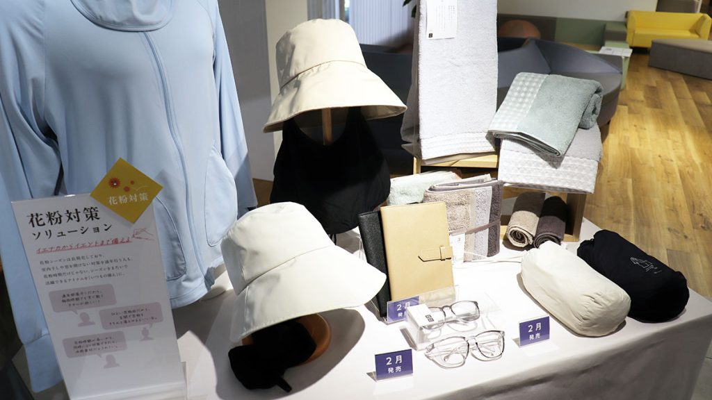 二季化により花粉の飛散期間も長期化・大量化している。3人に1人が室内干しを通年で行っているというデータを受け、KEYUCAでは抗菌防臭・部屋干し対応のタオルを標準化。さらに、UVカットや接触冷感機能を備えたアパレル雑貨により、花粉シーズン後も長く使えるアイテムを揃えた。