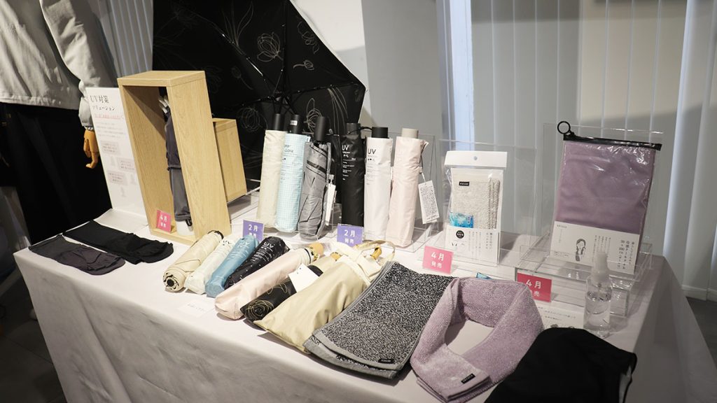 「外は猛暑、室内は冷房」という激しい寒暖差に対応するため、羽織としても使える「シアーUVシリーズ」を展開。また、遮光率99.99%以上を誇る「折畳傘 遮光耐風」は、自動開閉や耐風などユーザーが求める機能を細分化し、選びやすさを向上させた。