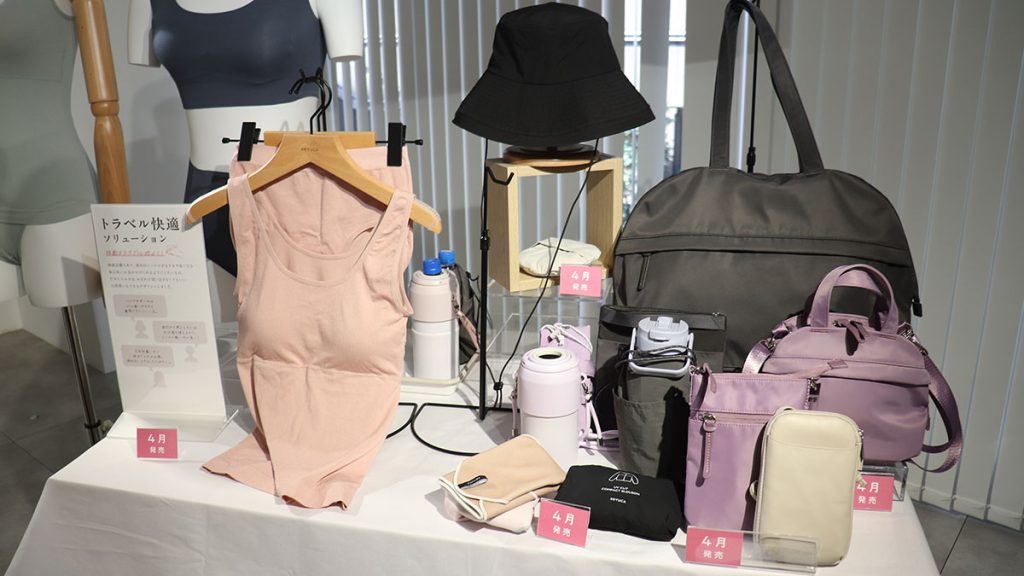 国内旅行需要が高まる一方、物価高で旅費への負担感も増している。そこで「旅行のためにわざわざ買わなくていい」日常アイテムを提案。コンパクトに畳める帽子や、ジム通いにも使えるバッグなどがその例だ。また、旅先での快適性を左右するインナーウェアにも注力しており、完全無縫製タイプなどを3月より順次発売する。