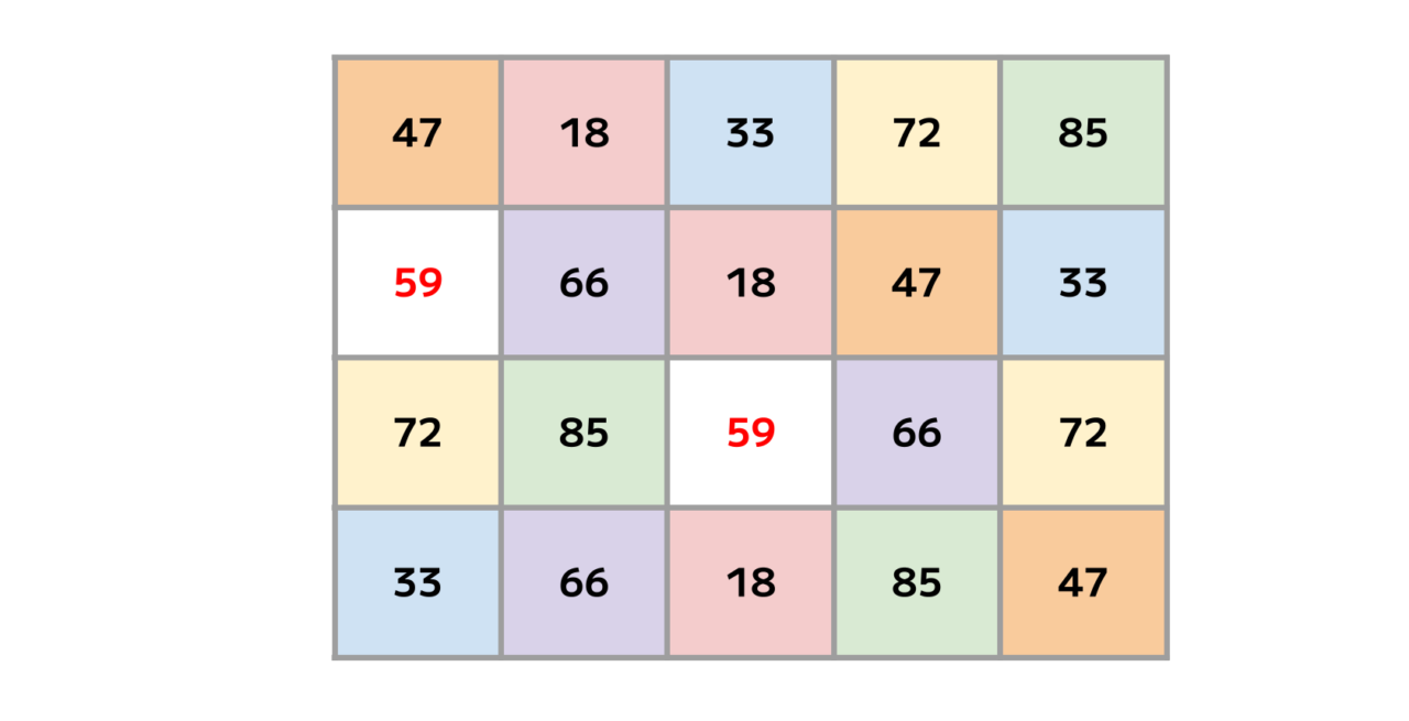 上記表でそれぞれの数字を色分けしていますが、59だけ赤文字にしています。