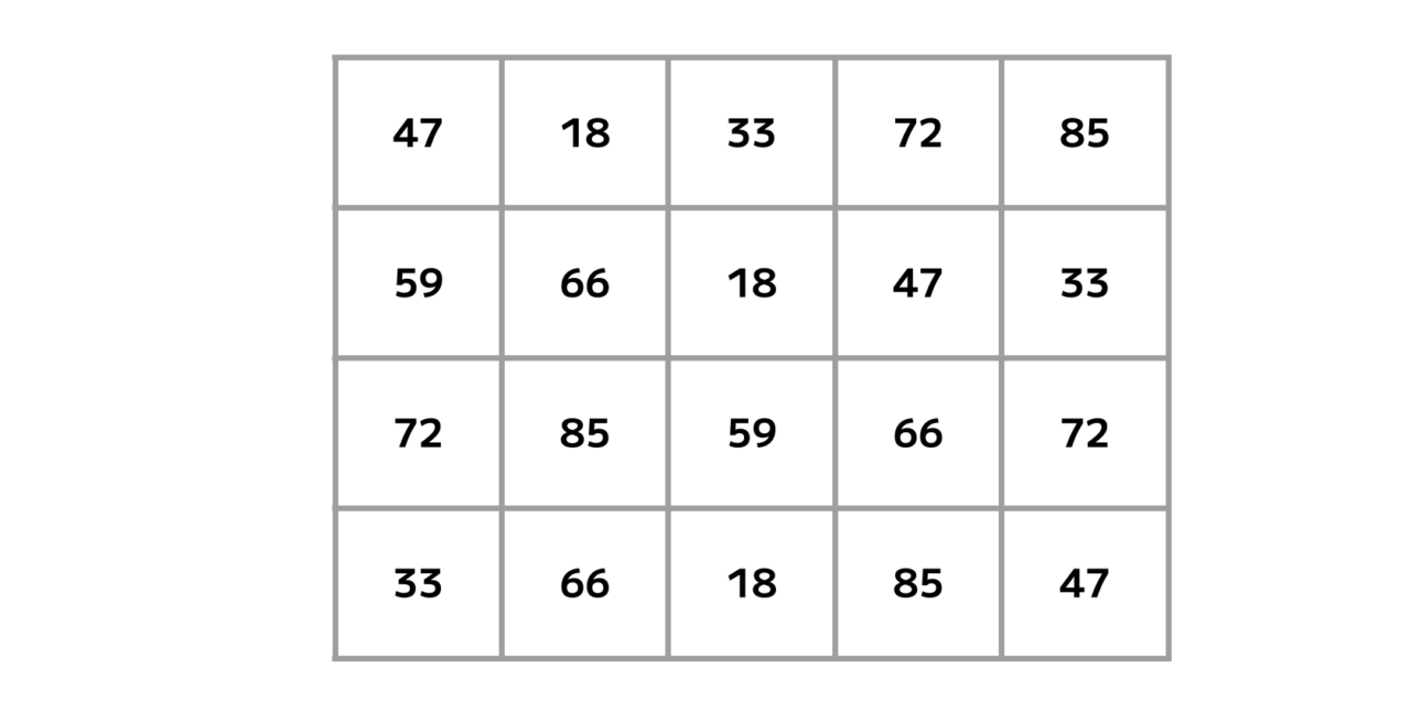 表を埋める「18・33・47・59・66・72・85」という7種の数字。