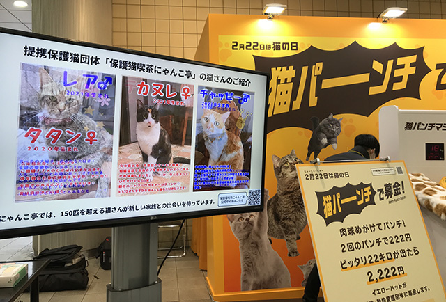 そのひとつが、この「猫パンチで募金」(2/20~2/22 @東京・渋谷マークシティ1階)。