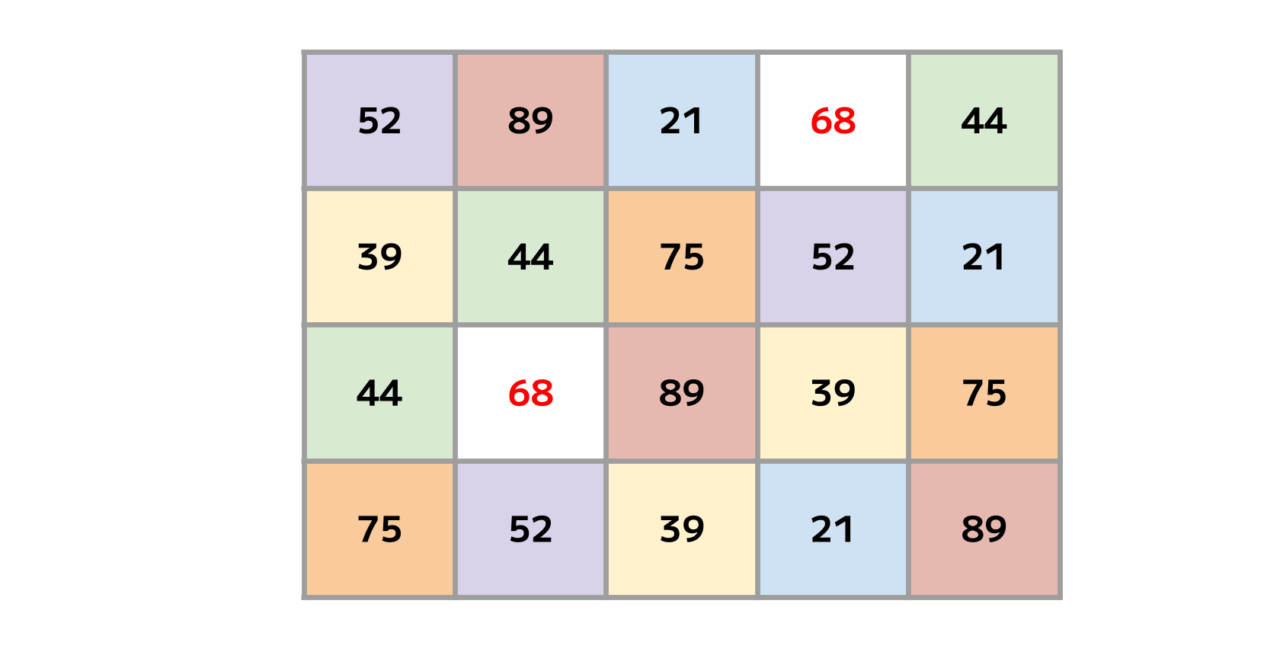 これを見ると、表中に68が2つしかないことがしっかり確認できますね!!