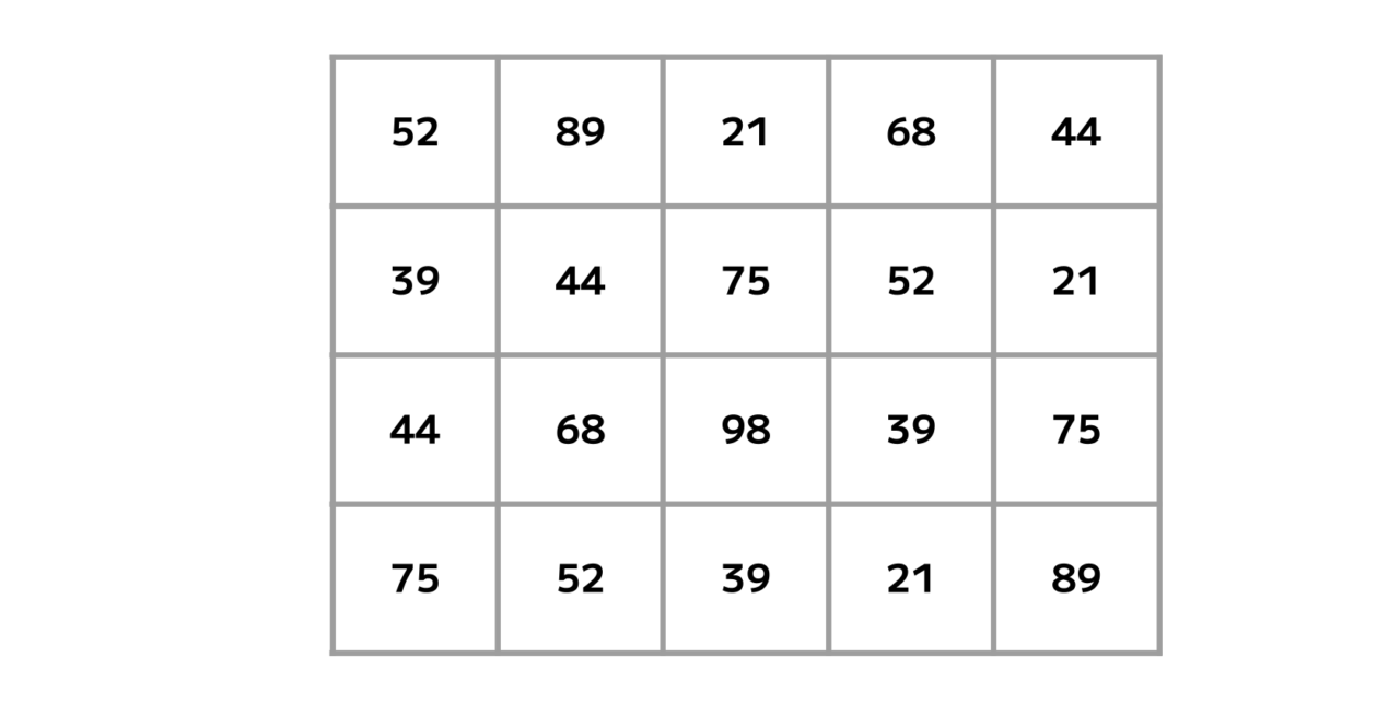 20マスの表の中に、2つしか書かれていない数字は見つけられましたか?