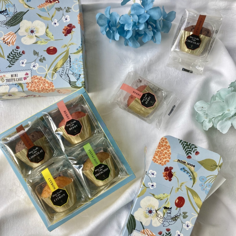 先に紹介したブールミッシュの人気商品「トリュフケーキ」が手のひらサイズのかわいい“ミニ”になって登場。ひと口サイズで食べやすく、ちょっとしたお返しやプチギフトに選びやすいのが魅力です。