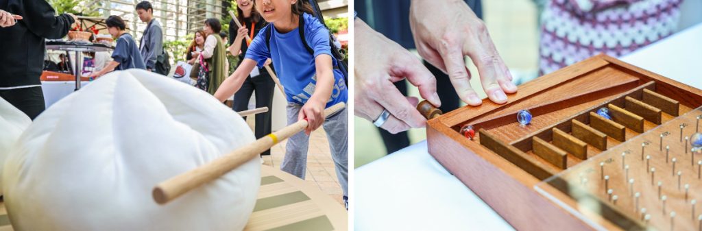 台湾夜市のにぎわいを再現した体験型アトラクションも用意される。巨大なお箸で小籠包クッションをつかむゲームや、夜市の定番ピンボール、台湾式の輪投げなど、遊びながら文化に触れられる構成だ。参加者にはオリジナルグッズのプレゼントもある。夜市の活気と楽しさを、視覚と身体感覚で味わえる空間である。