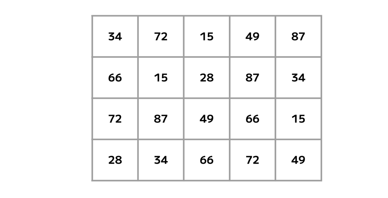 20マスの表の中に、2つしか書かれていない数字は見つけられましたか?