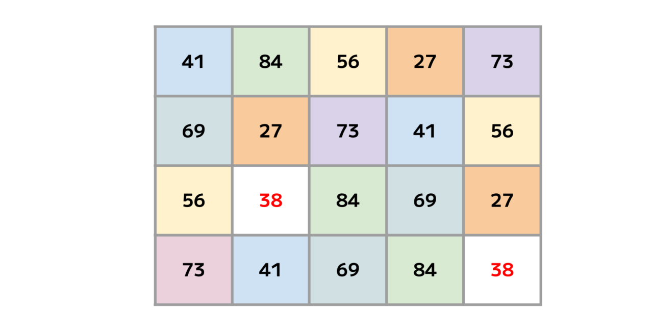 表を埋める「27・38・41・56・69・73・84」という7種の数字。