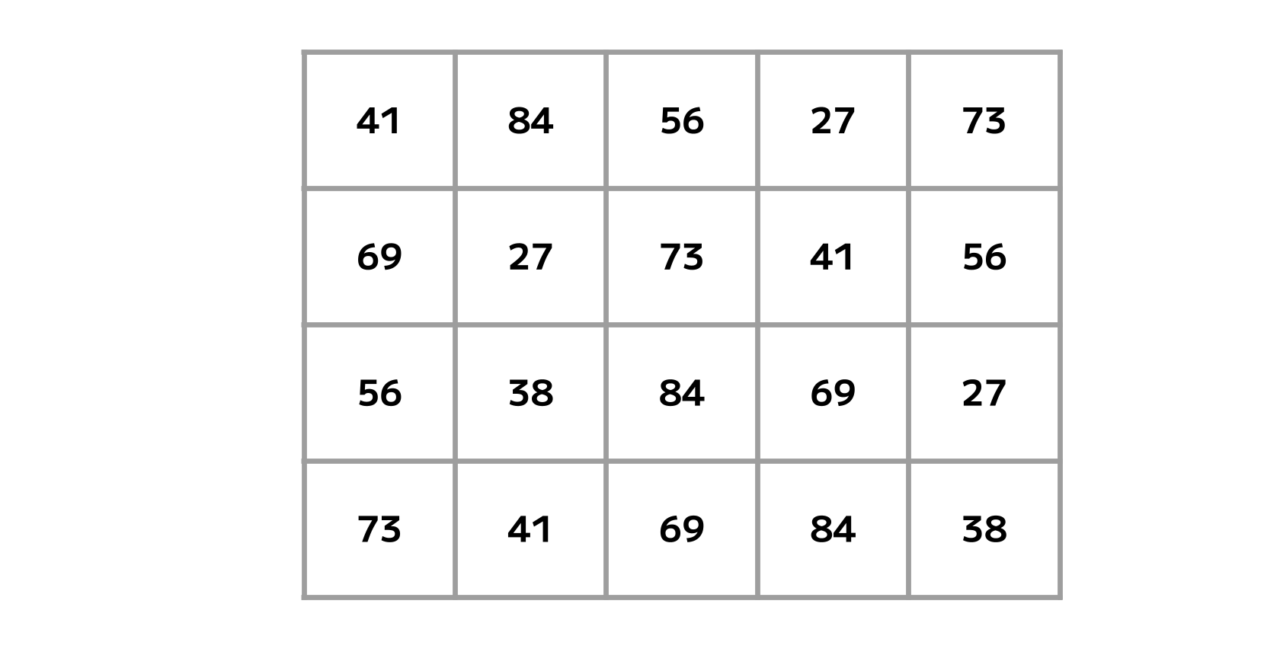 20マスの表の中に、2つしか書かれていない数字は見つけられましたか?