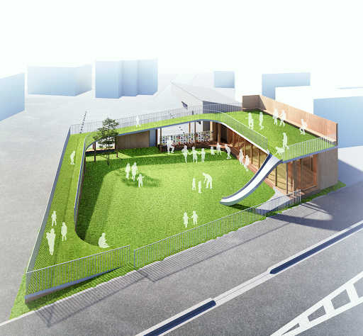 こどもが安心して過ごせる一時保育施設や広場を中心に、カフェスタンドやライブラリー、相談やワークショップができる小屋などを設ける予定です。