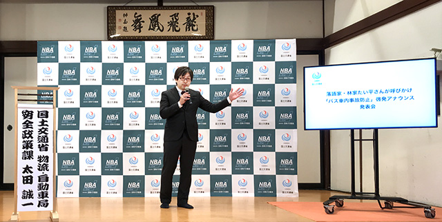 今回、そのご協力をお願いする車内アナウンスを林家たい平さんと制作し、全国の乗合バス車内で放送していただくことを想定しています」