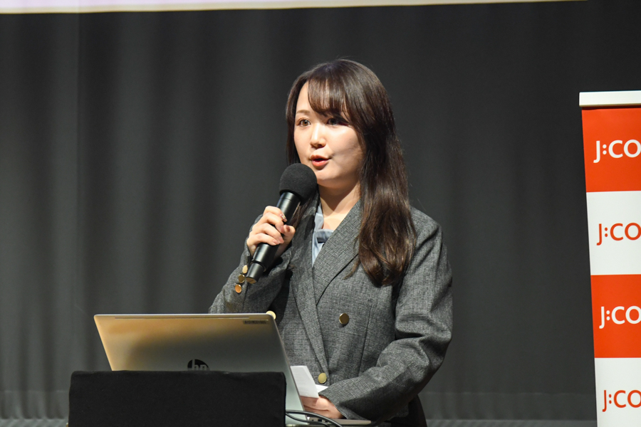 映像シリーズ『こちらJ:COM安心安全課 supervised by 日本赤十字社』の特別イベントとして、J:COMと日本赤十字社が連携する形で開催された今回の大学生向け防災セミナーでは、始めに主催者を代表してJCOM株式会社サステナビリティ推進部の西嶋麻凜氏が挨拶。