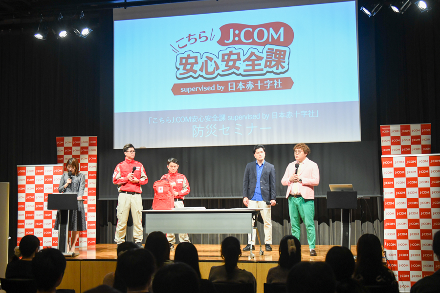 全国各地で行われているさまざまな安心安全の取り組みを紹介するレギュラー番組『こちらJ:COM安心安全課』を放送中のJCOM株式会社。同社が主催するリアルイベント「『こちらJ:COM安心安全課 supervised by 日本赤十字社』防災セミナー」が2月24日に東京都内で開催された。40名以上の大学生を対象に前後半の二部構成で行われたイベントの第1部には、お笑い芸人のマユリカがゲストとして登場。一方、第2部では日本赤十字社が4月から本格導入する新カリキュラムの防災セミナーが全国に先駆けて実施された。
