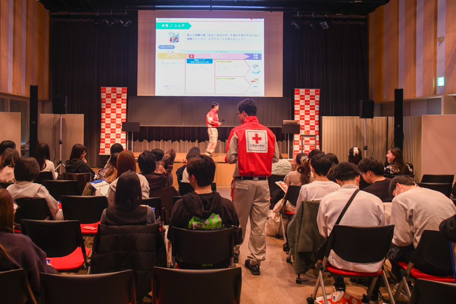日本赤十字社が今年4月から導入する防災セミナーの新カリキュラムは、防災を「自分ごと化」して捉えるコンテンツに刷新されているところがポイントだ。それを先行実施する形で行われた本セミナーでは、「大雨・災害時の危険が『自分ごと化』され、避難スイッチを迷わず入れられるようになること」を目的に、グループワークを交えた講義で避難スイッチの形成につなげた。