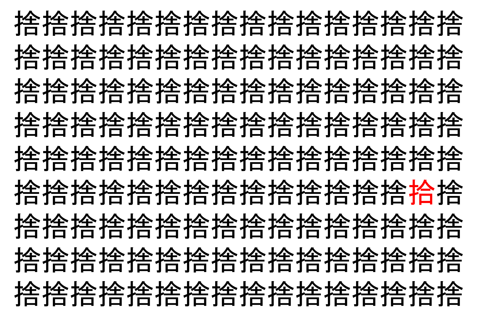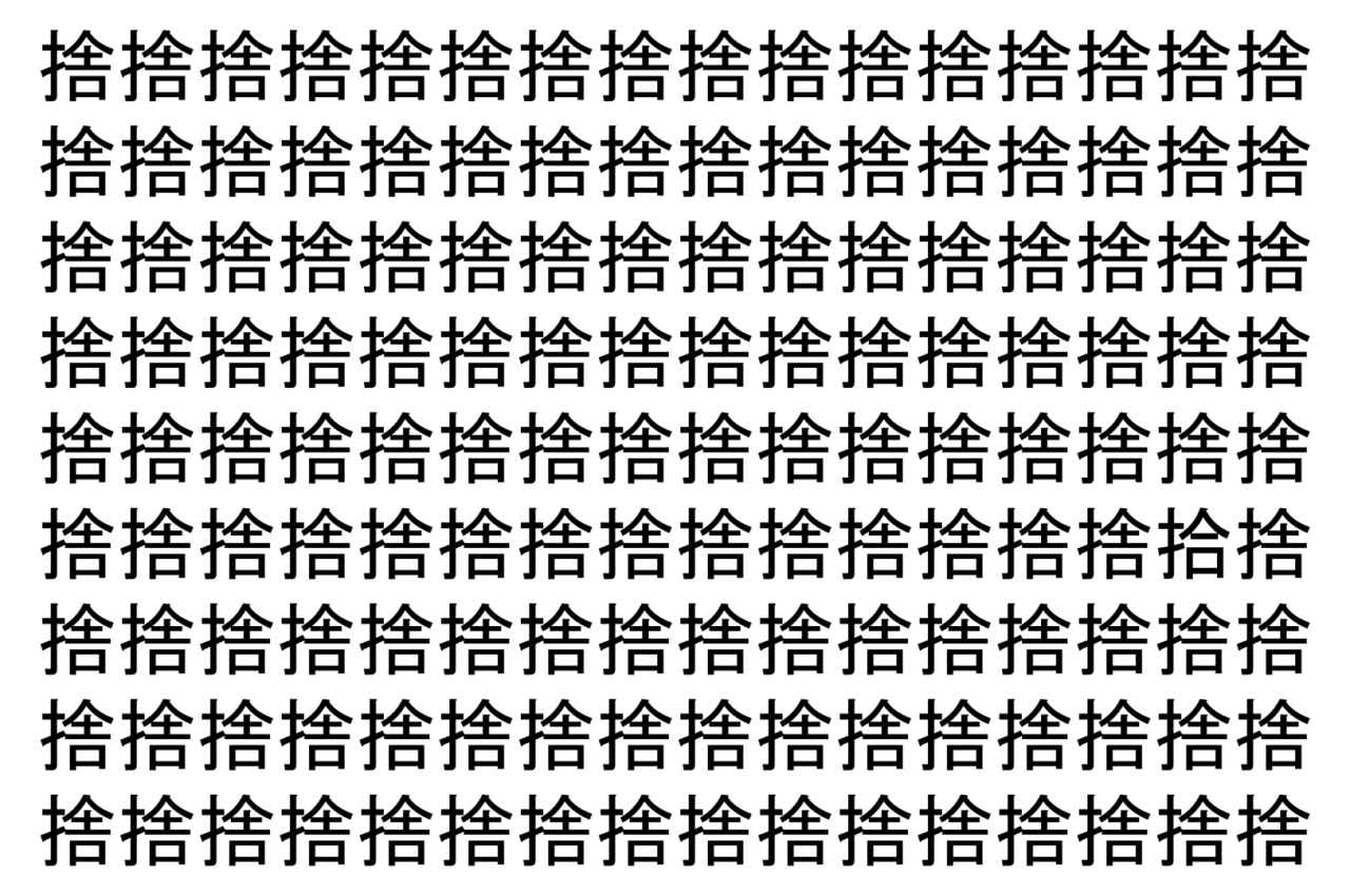 【脳トレ】「捨」の中に紛れて1つ違う文字がある!?あなたは何秒で探し出せるかな??【違う文字を探せ!】