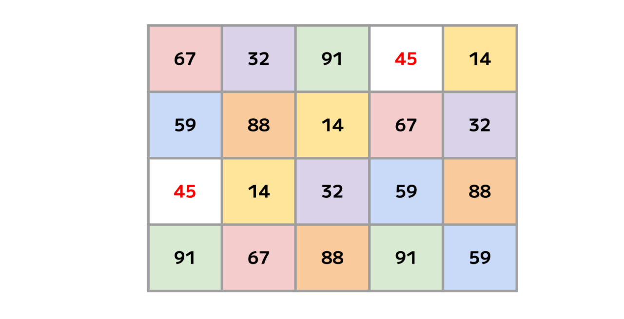 これを見ると、表中に45が2つしかないことがしっかり確認できますね!!