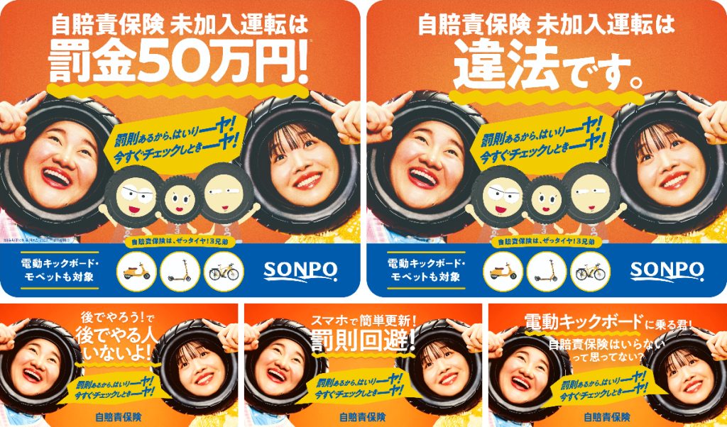 本キャンペーンは、自賠責保険の付保および継続漏れの防止を目的としたものである。昨年度から登場しているオリジナルキャラクター「ぜっタイヤ!3兄弟」に加え、今年度はガンバレルーヤのよしこ、まひるが広報キャラクターとして参加。原付や電動キックボード、モペットといった身近な乗り物をテーマに、更新忘れのリスクを分かりやすく伝える構成となっている。