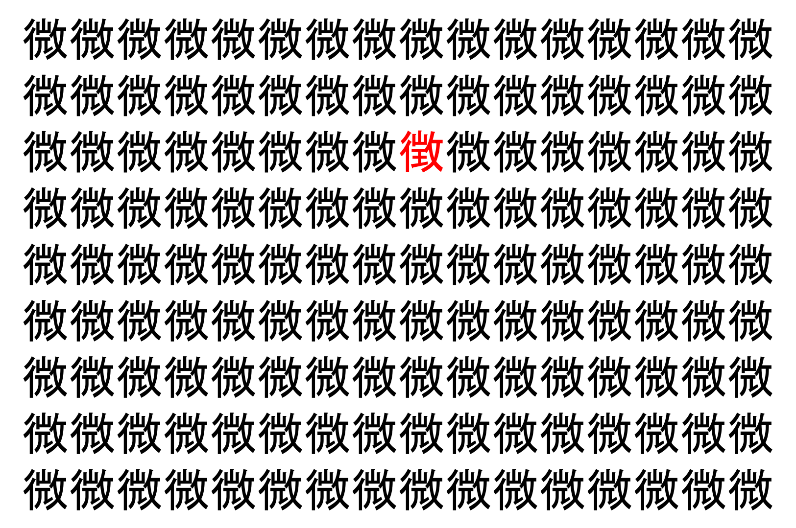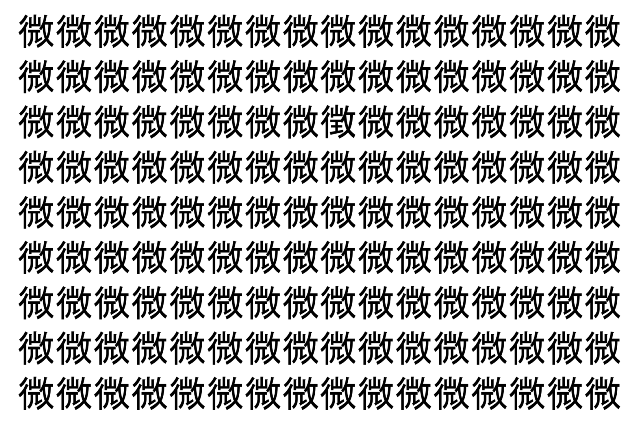 【脳トレ】「微」の中に紛れて1つ違う文字がある!?あなたは何秒で探し出せるかな??【違う文字を探せ!】
