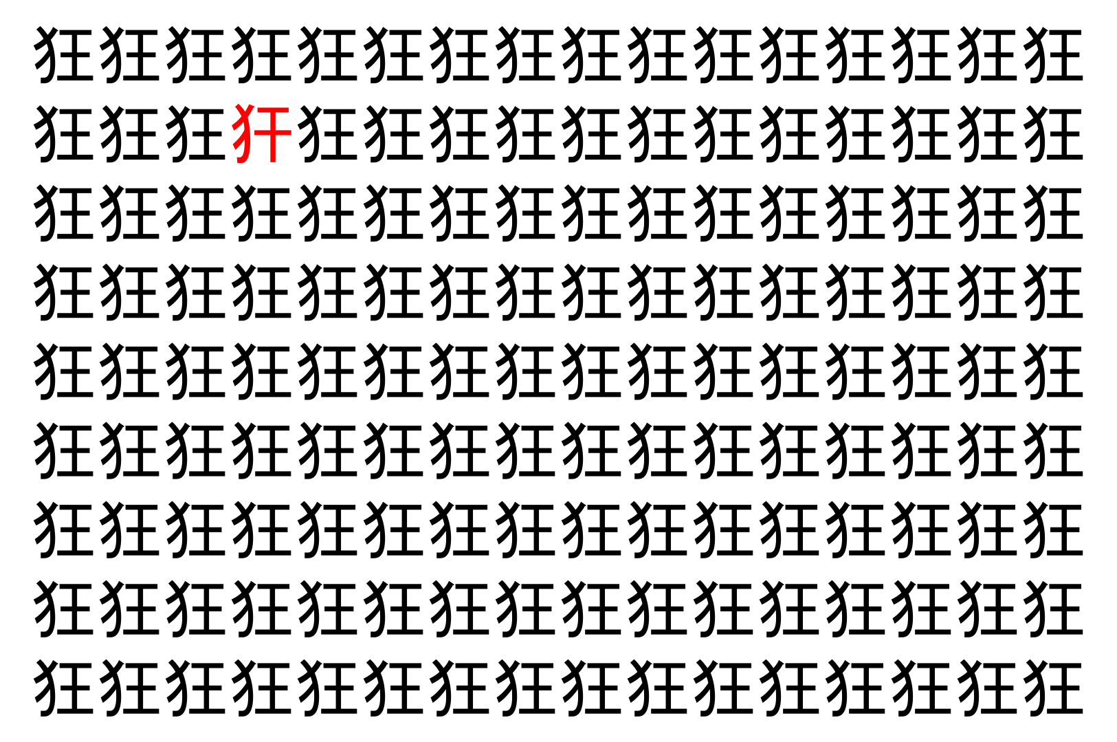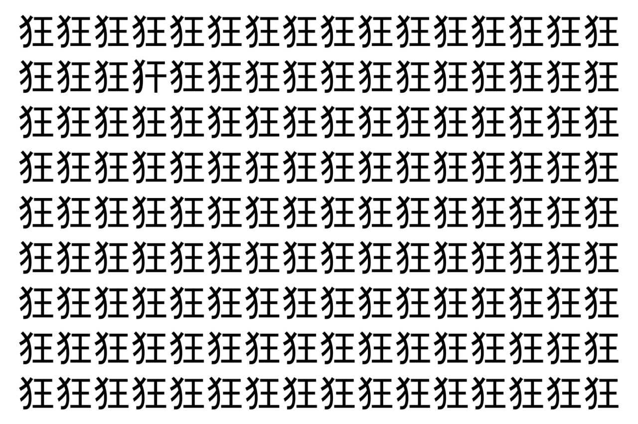 【脳トレ】「狂」の中に紛れて1つ違う文字がある!?あなたは何秒で探し出せるかな??【違う文字を探せ!】