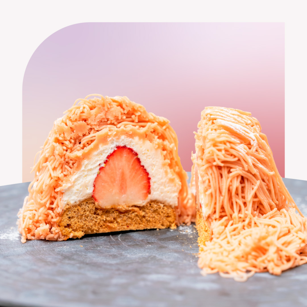 国産和栗の特製マロンクリームに桜と苺を合わせた、春の訪れを感じさせるモンブラン。