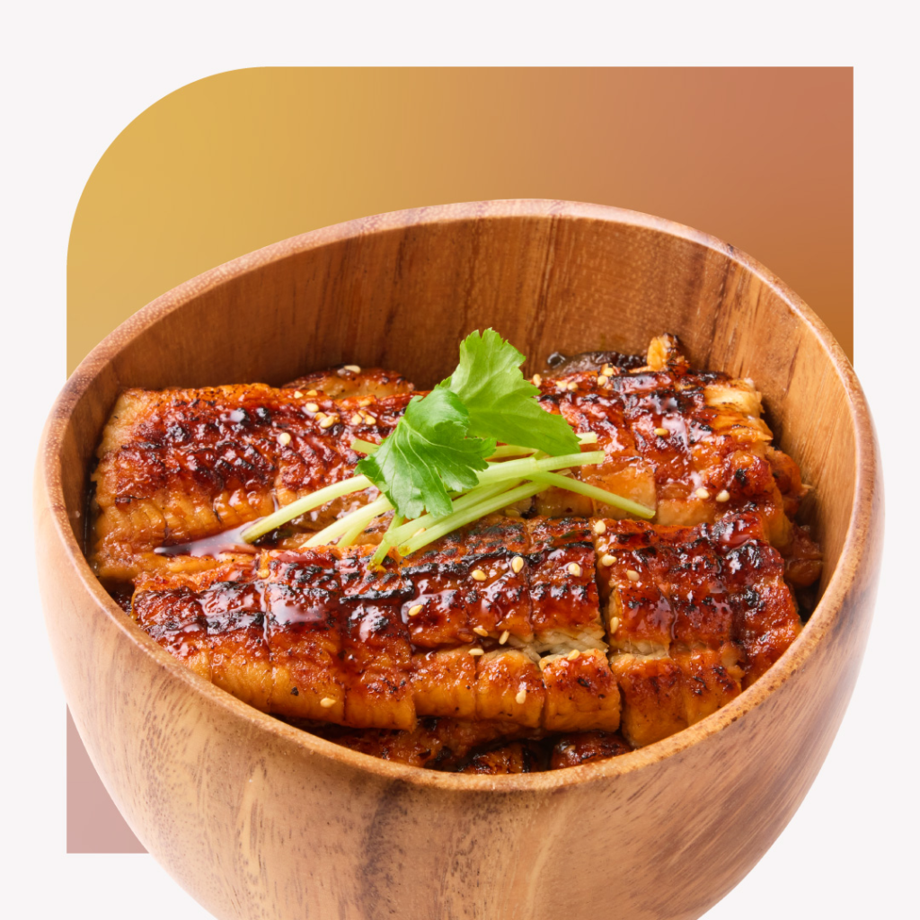 香ばしく炙ったうなぎを二段重ねにした一品。お茶漬けとしても楽しめる(1日限定10食)。
