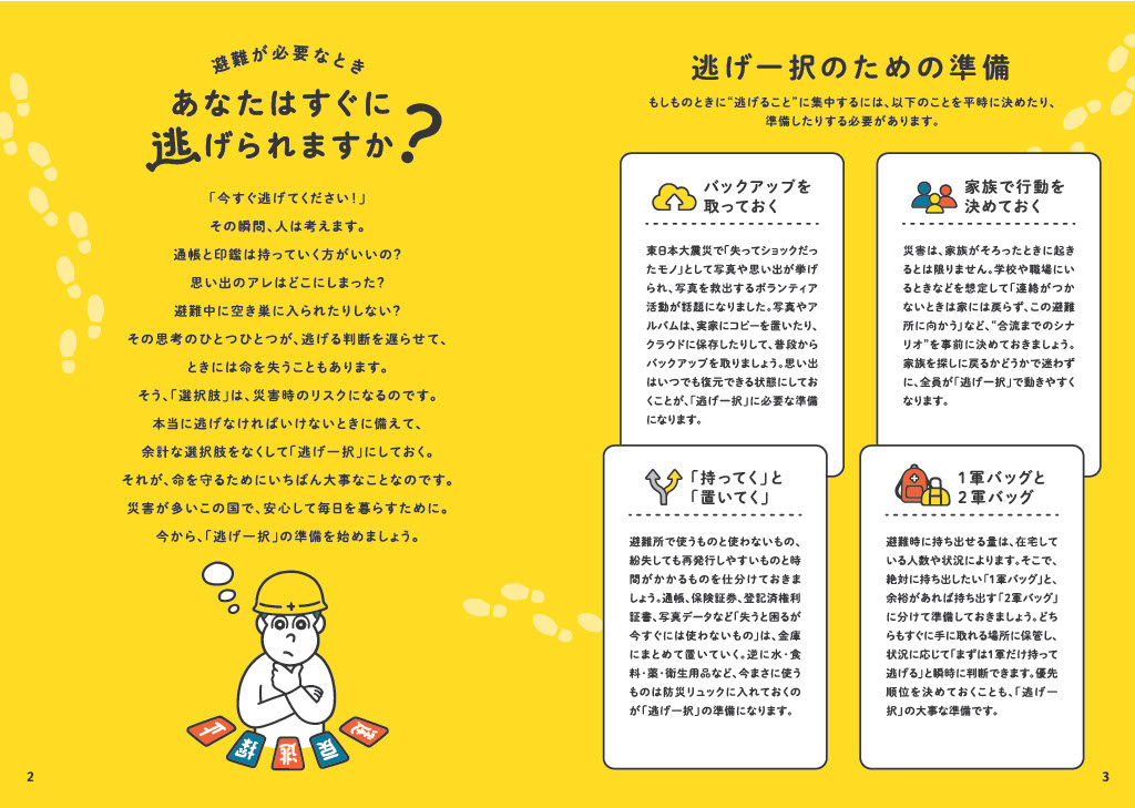 もしもの時すぐ逃げられますか? 「逃げ一択防災」を提案する防災ブックが無料配布
