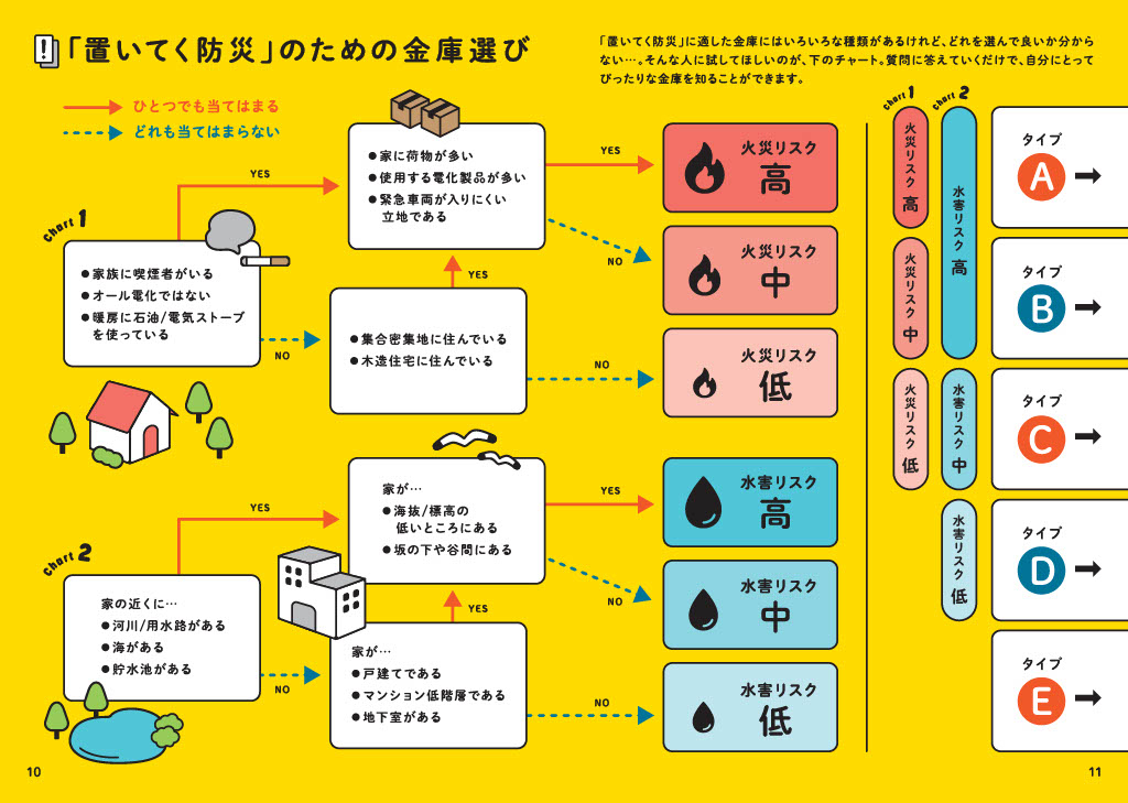 自宅の立地や環境によって備えるべきポイントは変わる。冊子ではリスク診断や選び方のチャートも掲載されており、自分の家庭に合った備えを考えるヒントとして活用できる内容となっている。